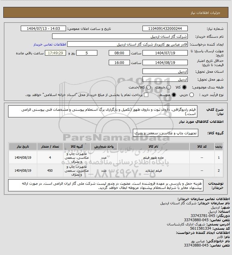 نام دستگاه خریدار:شرکت گاز استان اردبیل