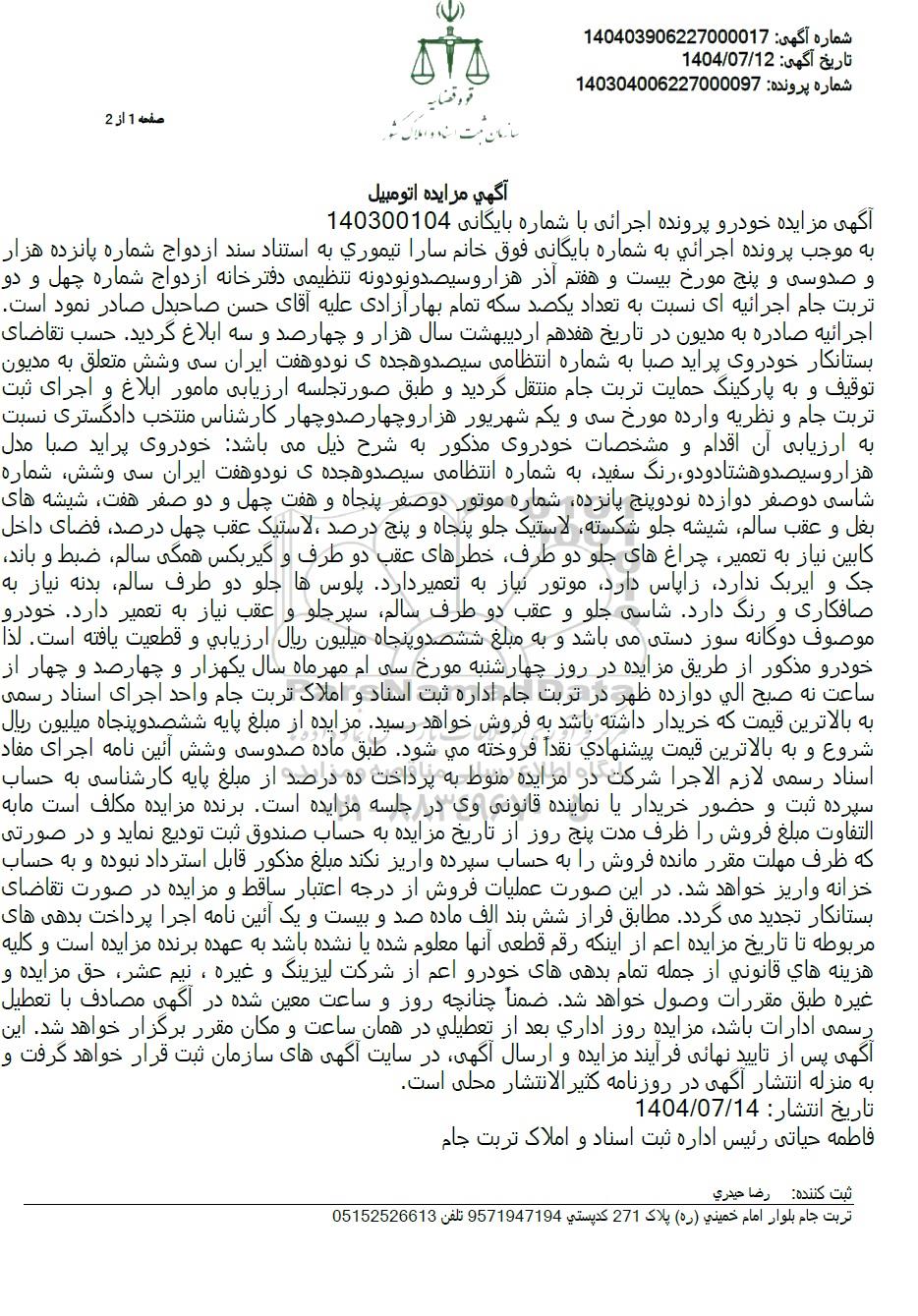 آگهی مزایده اتومبیل