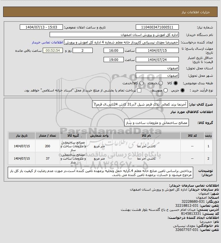 نام دستگاه خریدار:اداره کل اموزش و پرورش استان اصفهان