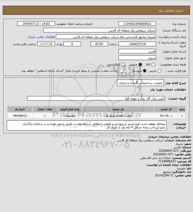 شرح کلی نیاز: عملیات ساختمانی گناوه1 و مرکزی