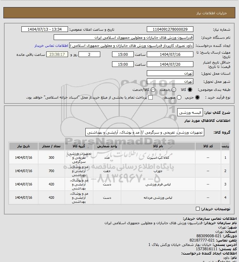 نام دستگاه خریدار:فدراسیون ورزش های جانبازان و معلولین جمهوری اسلامی ایران