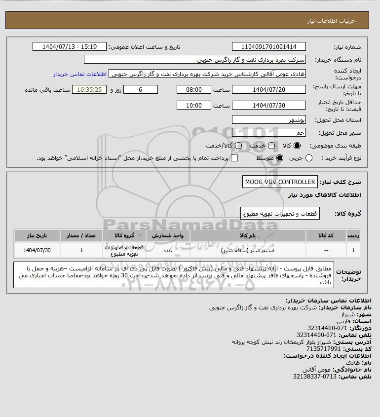 استعلام MOOG VGV CONTROLLER, استعلام MOOG VGV CONTROLLER