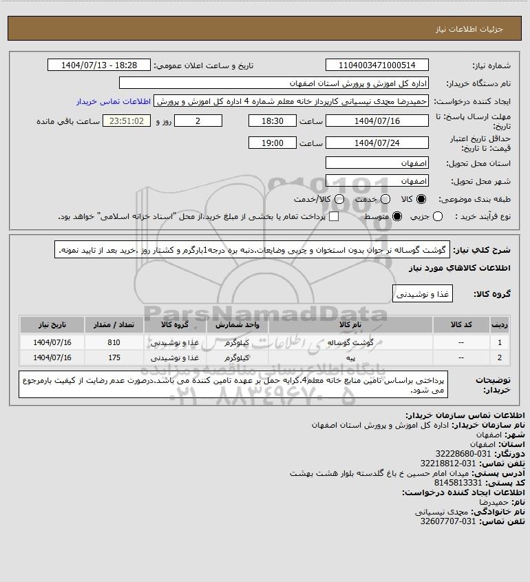 نام سازمان خریدار: اداره کل اموزش و پرورش استان اصفهان