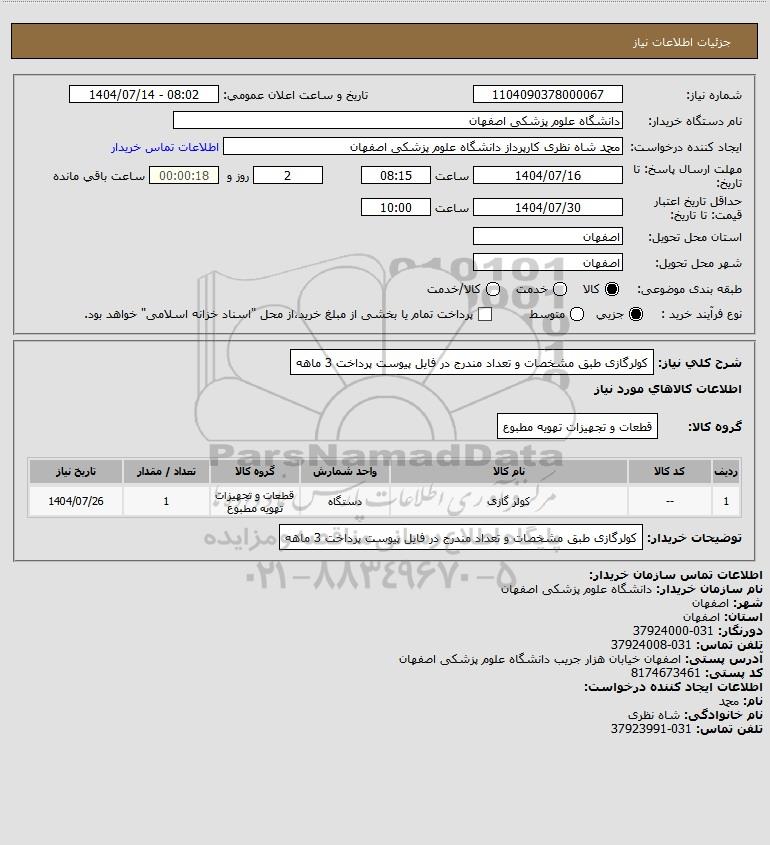 نام دستگاه خریدار:دانشگاه علوم پزشکی اصفهان