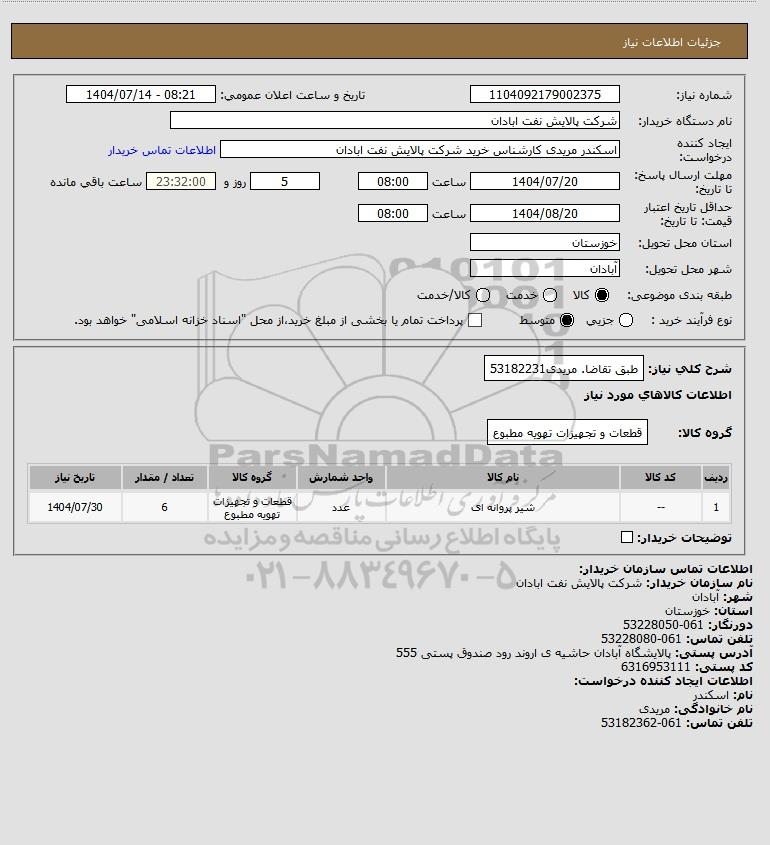 نام دستگاه خریدار:شرکت پالایش نفت ابادان