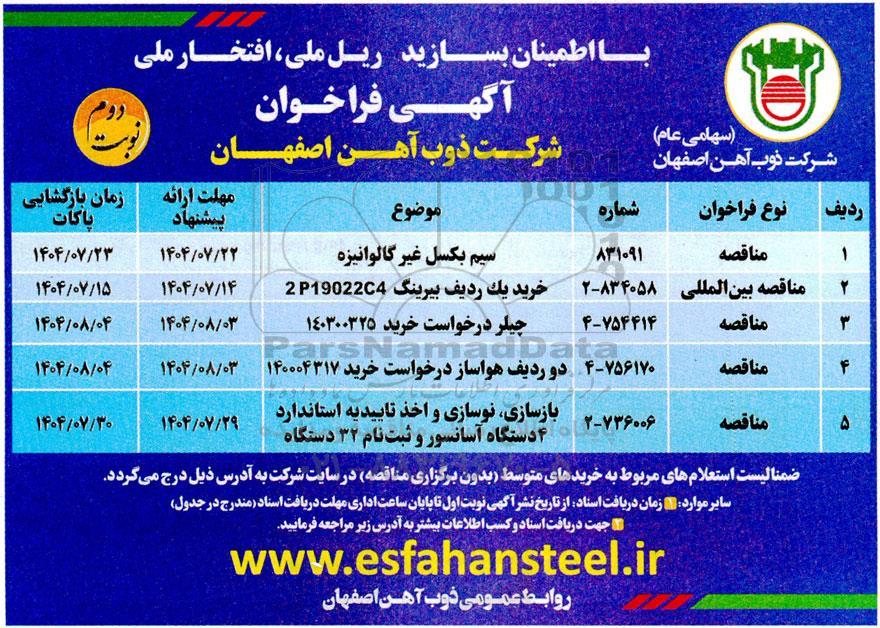فراخوان سیم بکسل غیر گالوانیزه.... - نوبت دوم, فراخوان سیم بکسل غیر گالوانیزه.... - نوبت دوم