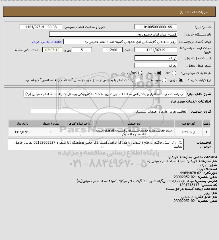 شرح کلی نیاز: درخواست خرید، استقرار و پشتیبانی سامانه مدیریت پرونده های الکترونیکی پرسنل کمیته امداد امام خمینی (ره)