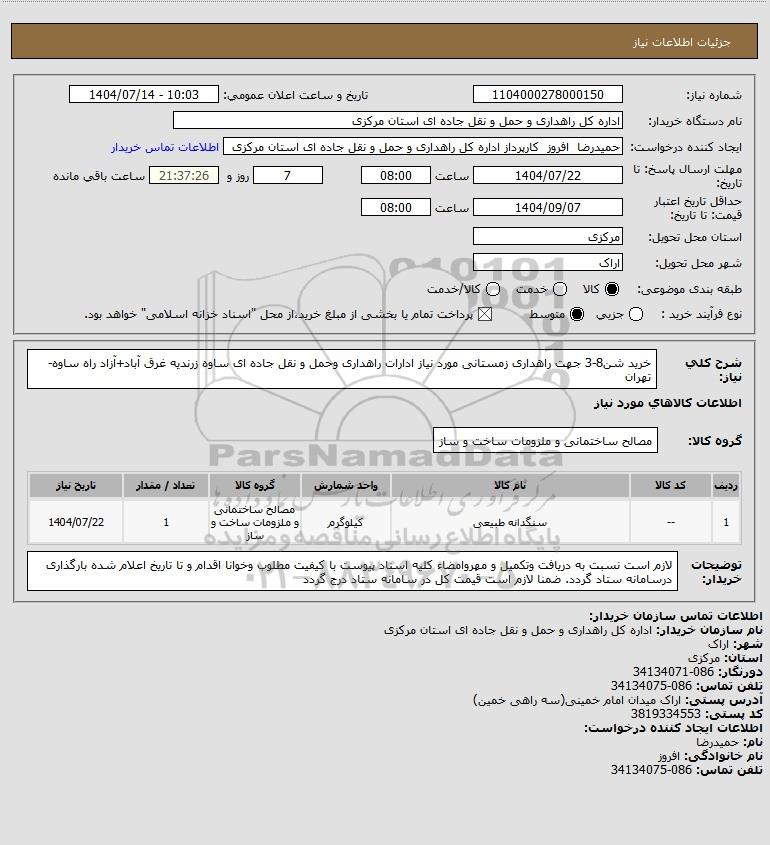 نام سازمان خریدار: اداره کل راهداری و حمل و نقل جاده ای استان مرکزی