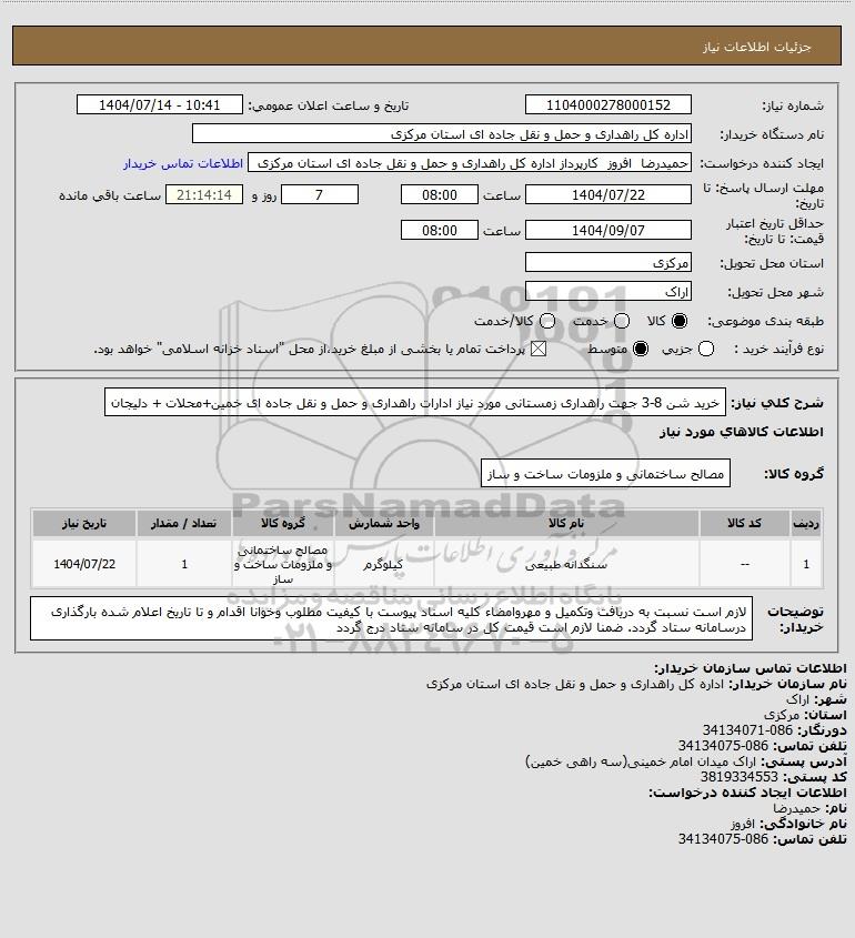 نام دستگاه خریدار:اداره کل راهداری و حمل و نقل جاده ای استان مرکزی