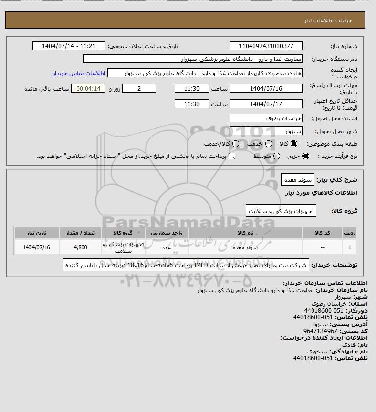 نام دستگاه خریدار:معاونت غذا و دارو دانشگاه علوم پزشکی سبزوار