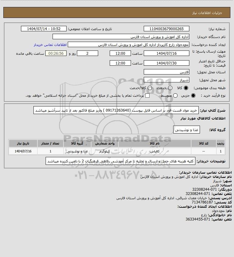 نام سازمان خریدار: اداره کل اموزش و پرورش استان فارس