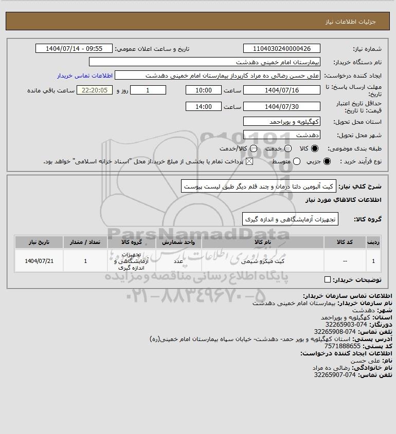 شرح کلی نیاز: کیت آلبومین دلتا درمان و چند قلم دیگر طبق لیست پیوست