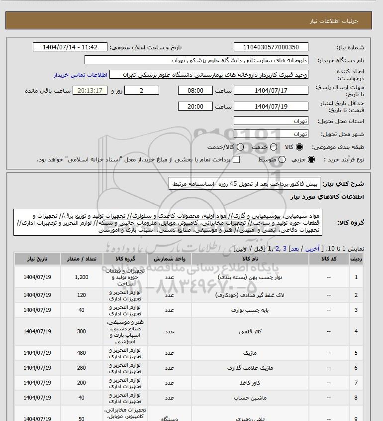 نام دستگاه خریدار:داروخانه های بیمارستانی دانشگاه علوم پزشکی تهران