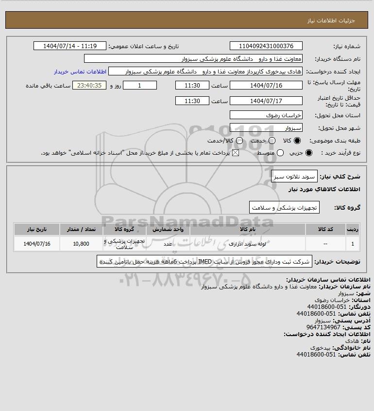 نام دستگاه خریدار:معاونت غذا و دارو دانشگاه علوم پزشکی سبزوار