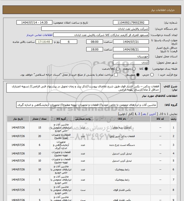نام دستگاه خریدار:شرکت پالایش نفت ابادان