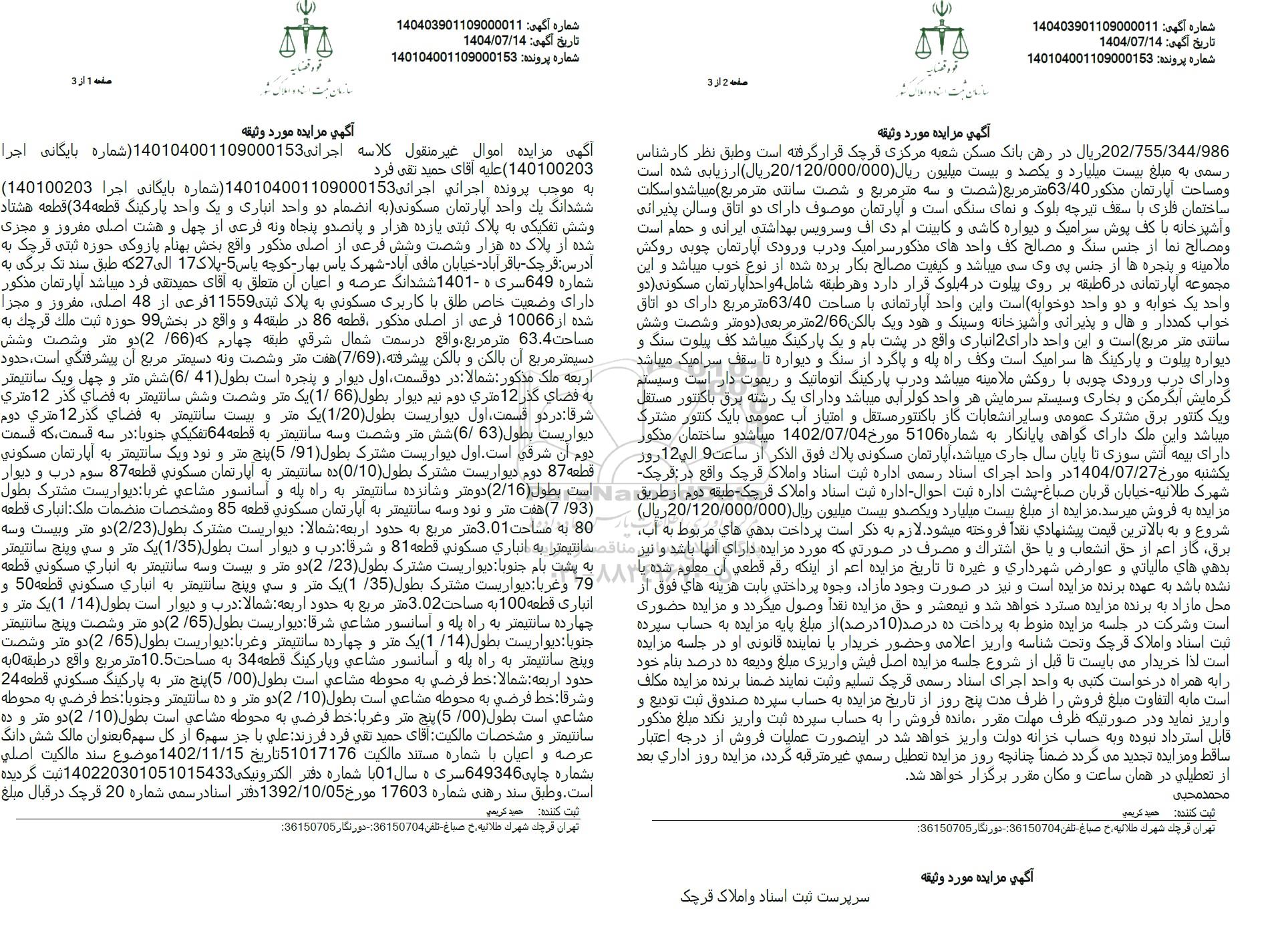 1 مزایده فروش تعدادی از املاک 9816783 1404/08/17 new special payed سایر