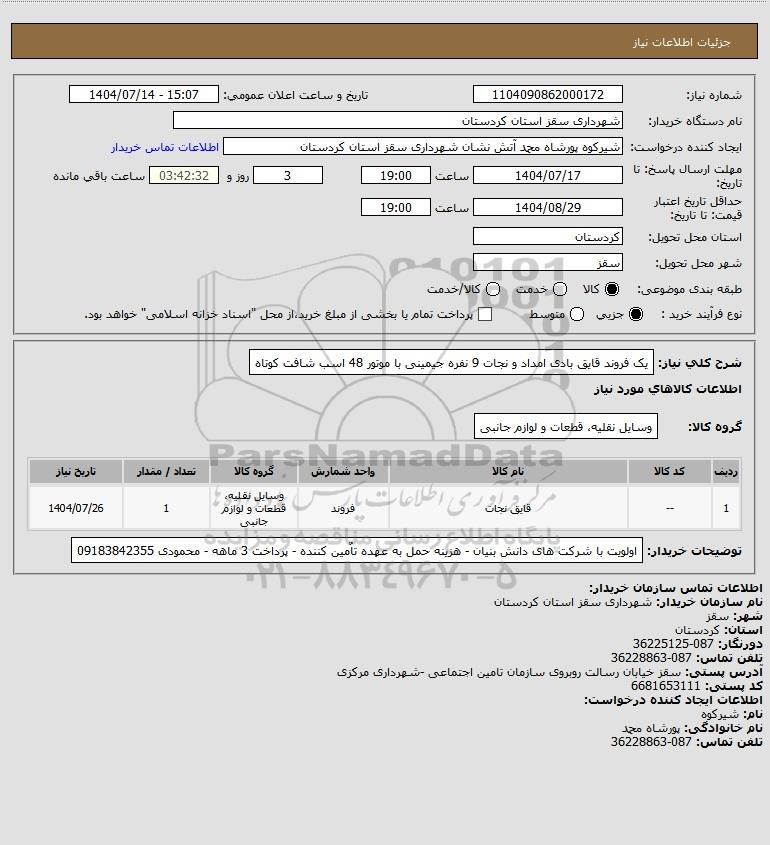 1 -- قایق نجات فروند وسایل نقلیه، قطعات و لوازم جانبی 1 1404/07/26