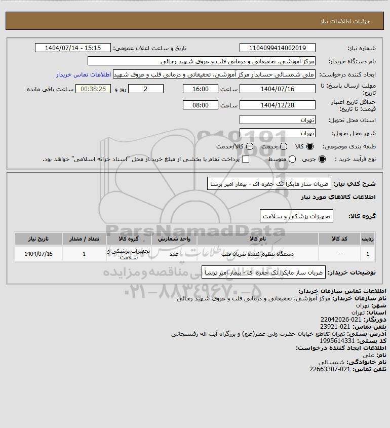 نام دستگاه خریدار:مرکز آموزشی، تحقیقاتی و درمانی قلب و عروق شهید رجائی