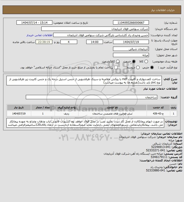 نام دستگاه خریدار:شرکت سهامی فولاد اذربایجان