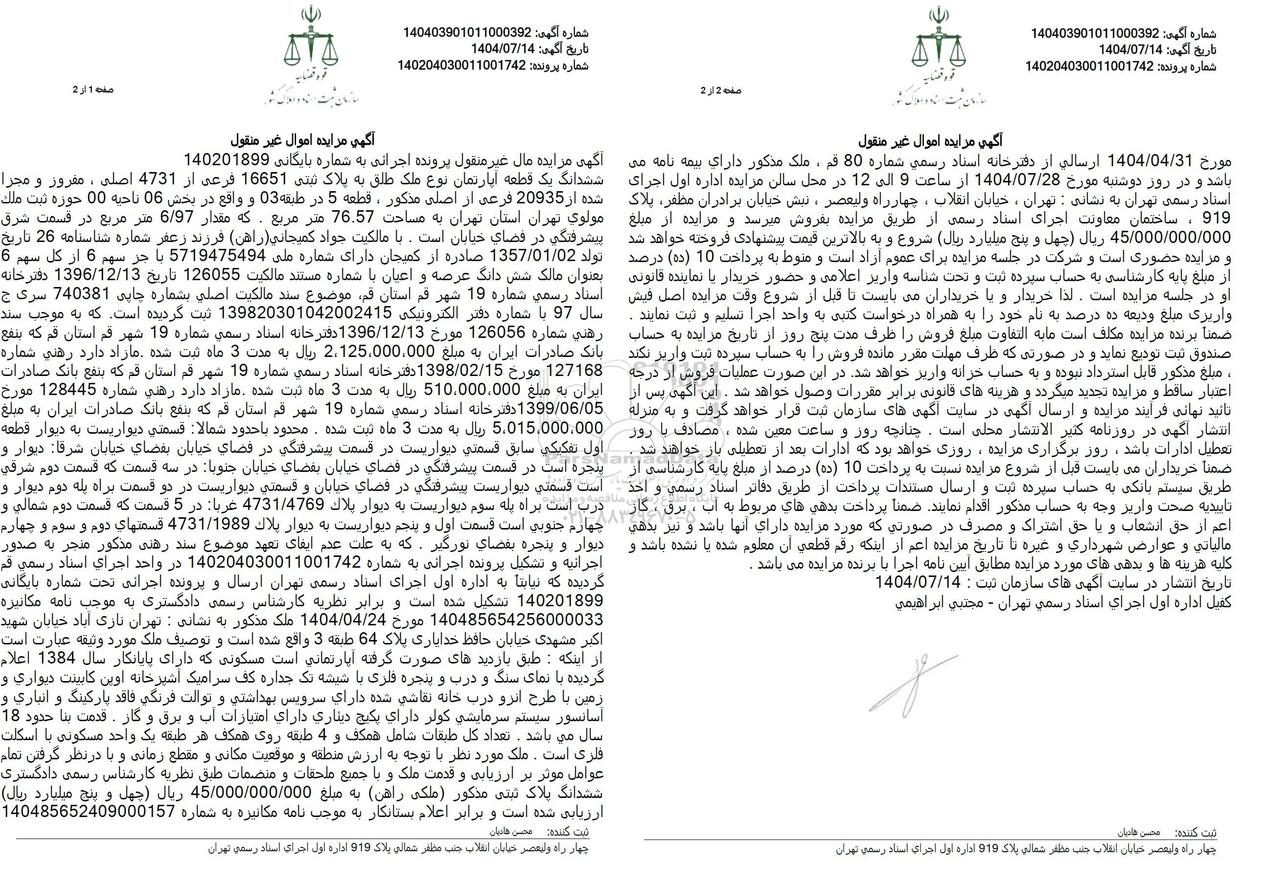 شماره آگهی 140403901011000392