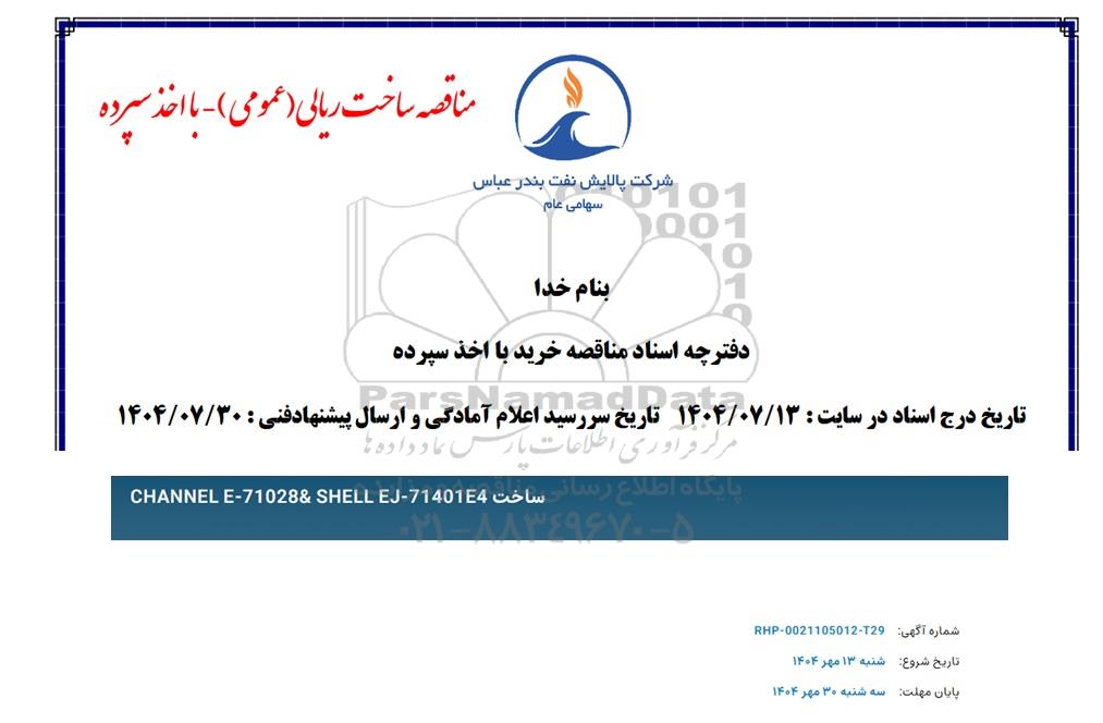 مناقصه ساخت CHANNEL E-71028& SHELL EJ-714014, مناقصه ساخت CHANNEL E-71028& SHELL EJ-714014