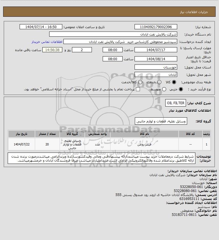 شرح کلی نیاز: OIL FILTER