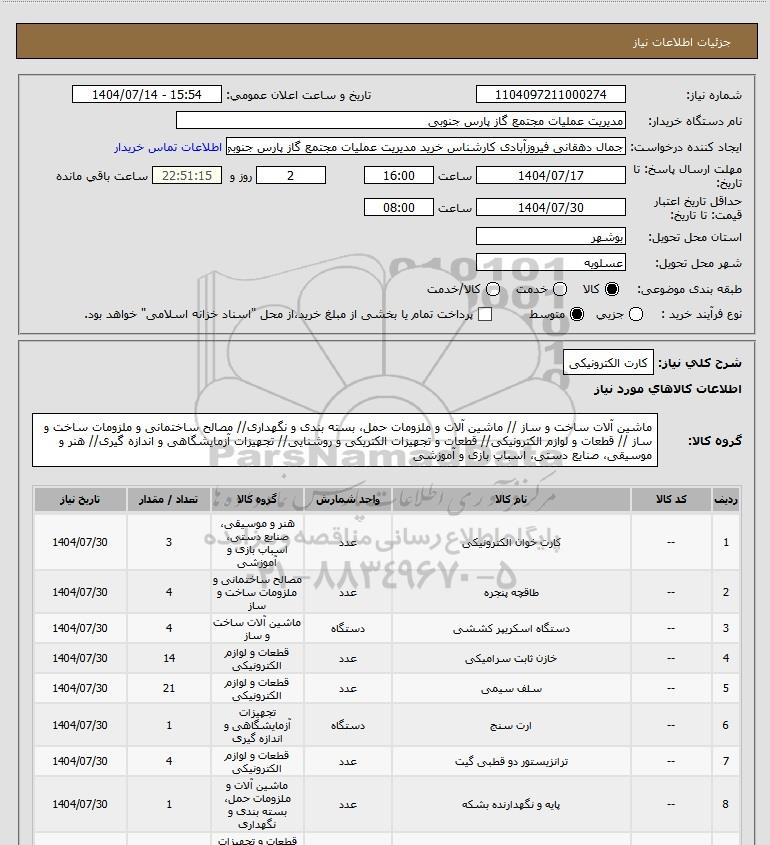 نام سازمان خریدار: مدیریت عملیات مجتمع گاز پارس جنوبی