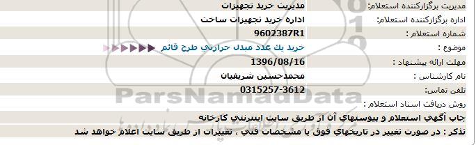 اداره برگزارکننده استعلام: اداره خرید تجهیزات ساخت