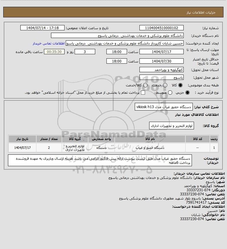 نام دستگاه خریدار:دانشگاه علوم پزشکی و خدمات بهداشتی درمانی یاسوج