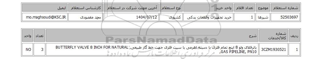 52503697شیرها1خرید تجهیزات وقطعات یدکیکشوری1404/07/12محمد مقصودیmo.maghsoudi@KSC.IR