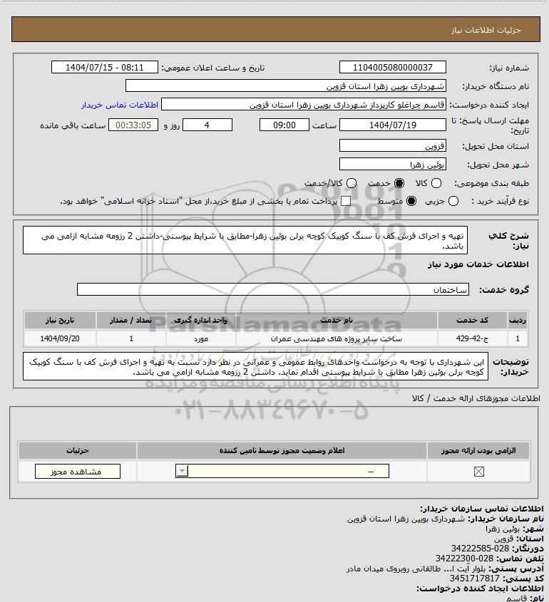 نام دستگاه خریدار:شهرداری بویین زهرا استان قزوین