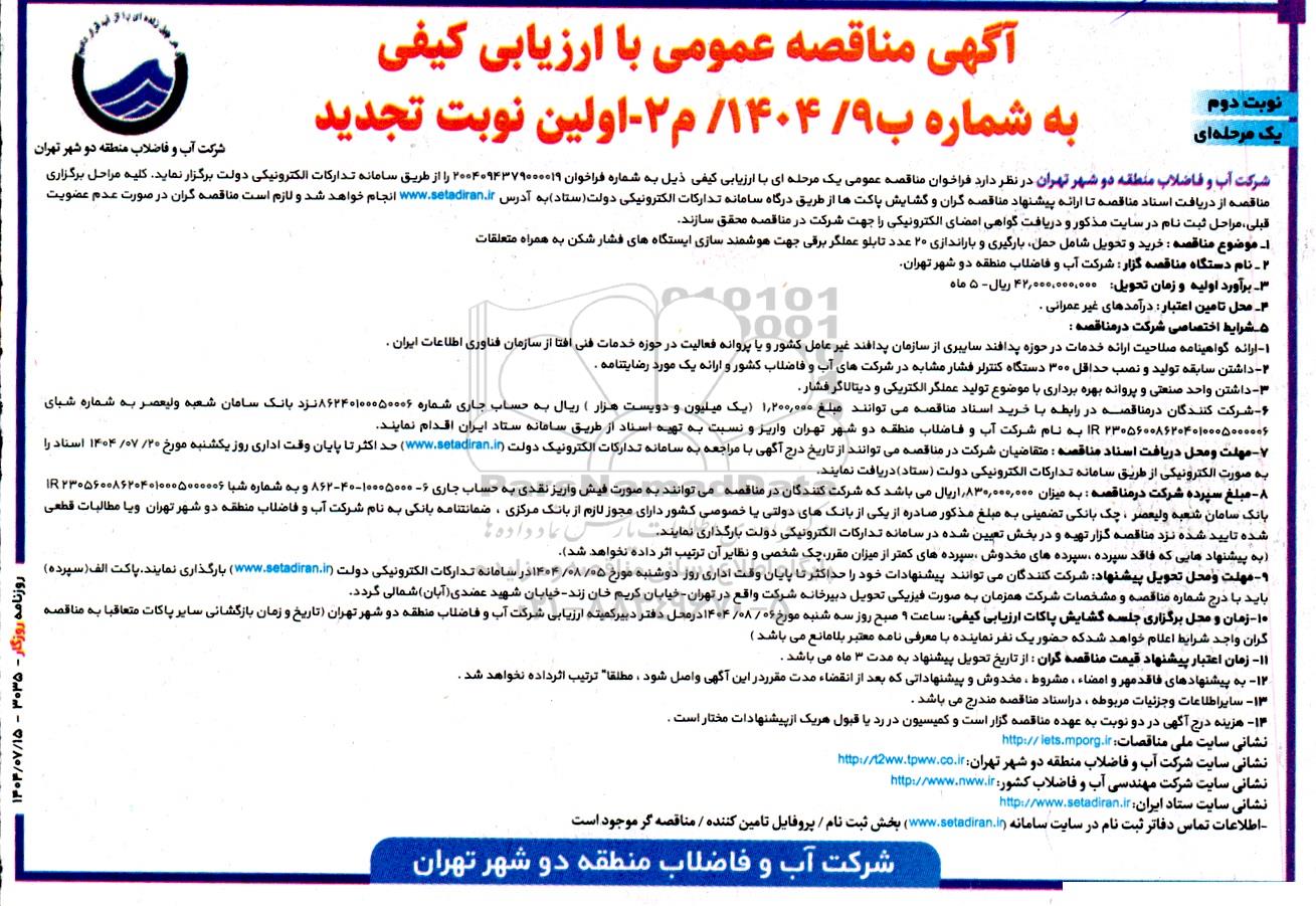 آگهی مناقصه عمومی با ارزیابی کیفی به شماره ب 9 / 1404 / م 2 - اولین نوبت تجدید ؟
