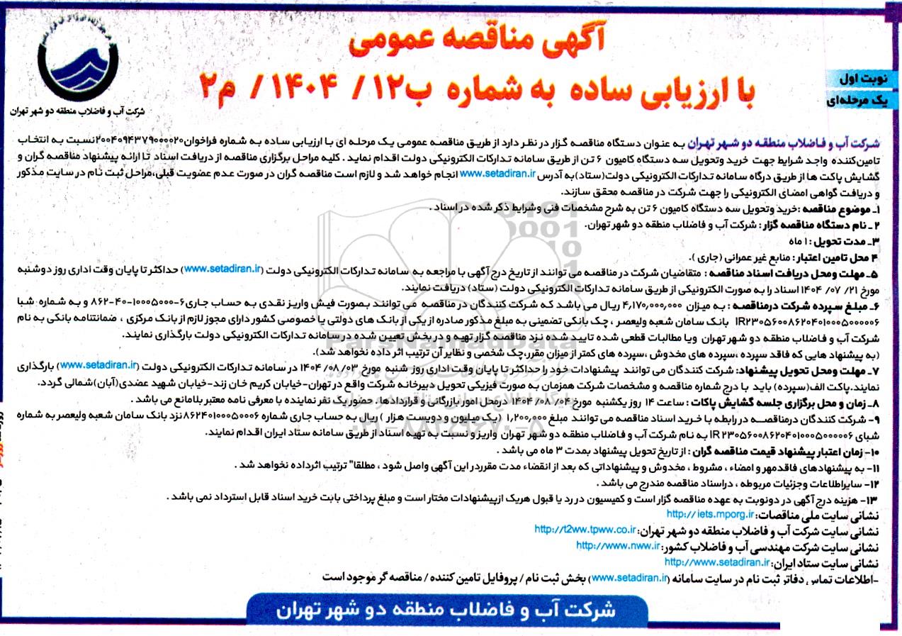 آگهی مناقصه عمومی با ارزیابی ساده به شماره ب 12 / 1404 / م2 ؟