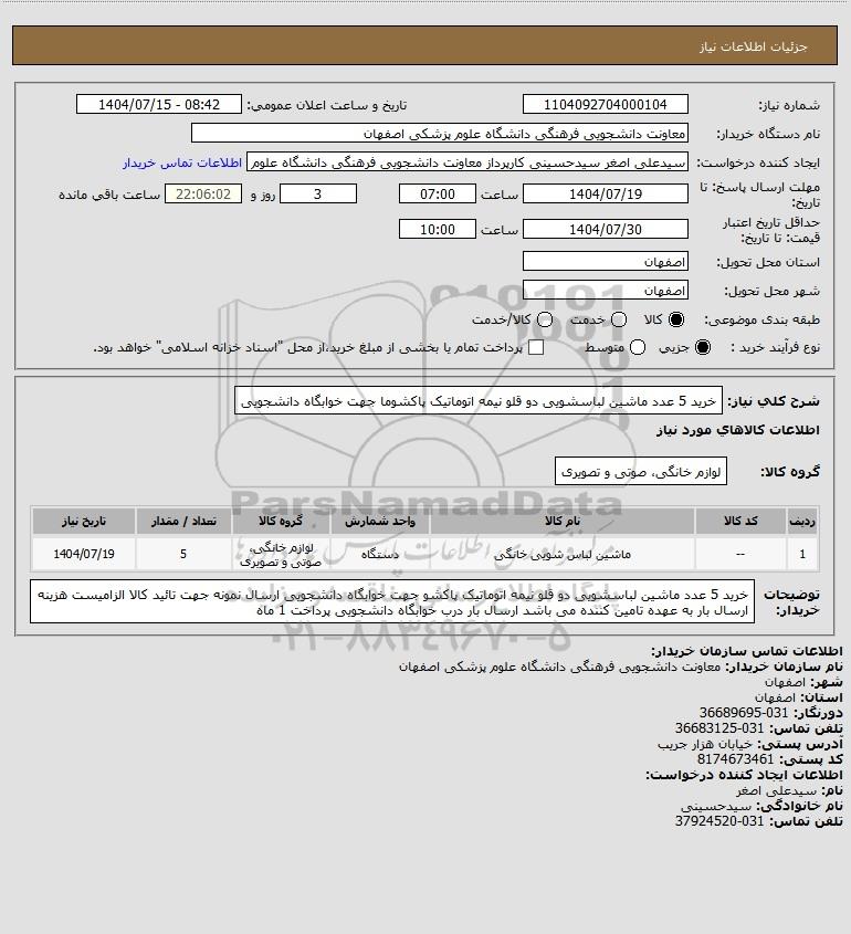 نام دستگاه خریدار:معاونت دانشجویی فرهنگی دانشگاه علوم پزشکی اصفهان
