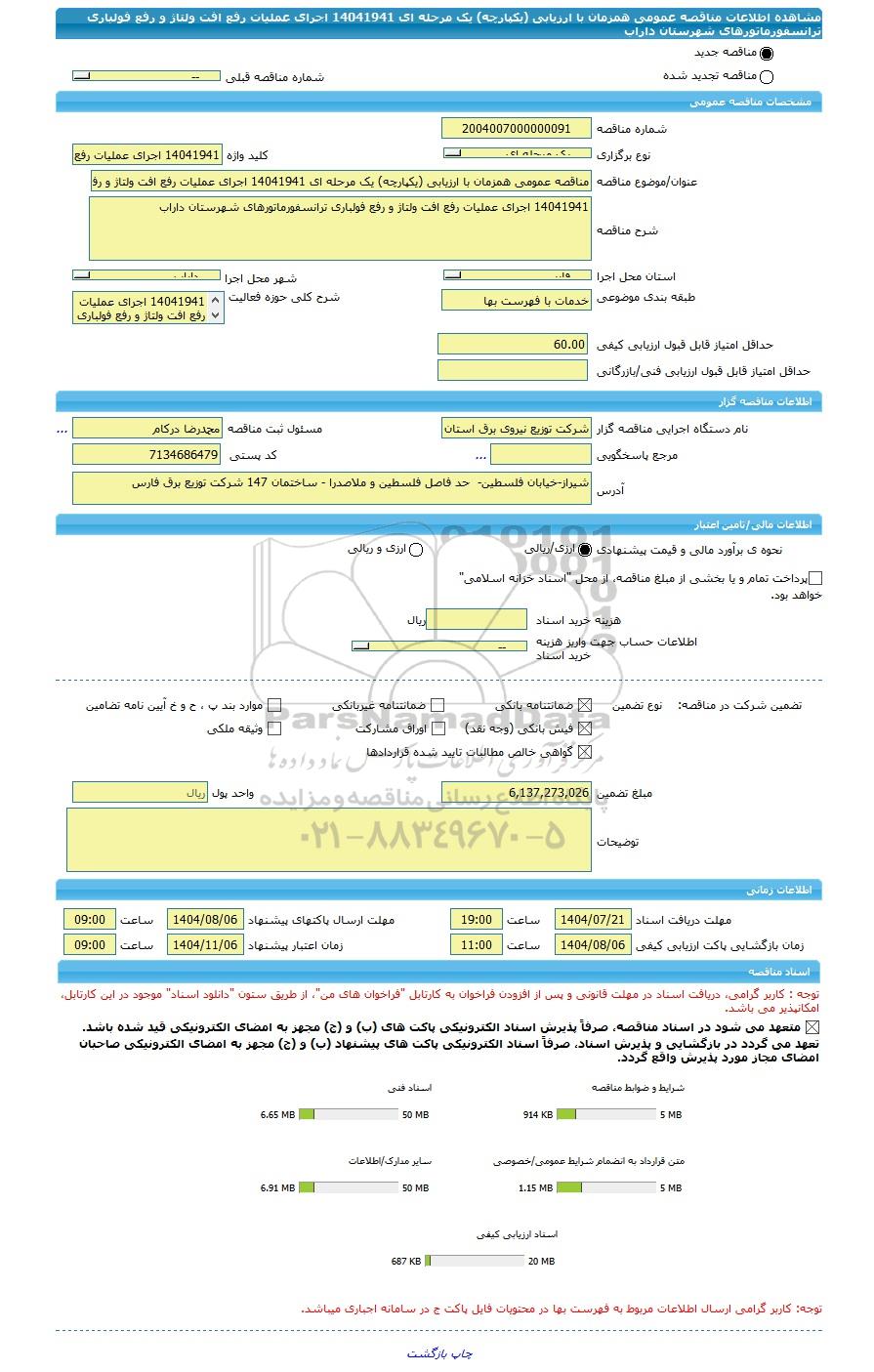 | مبلغ تضمین | 6,137,273,026 | واحد پول | ریال |