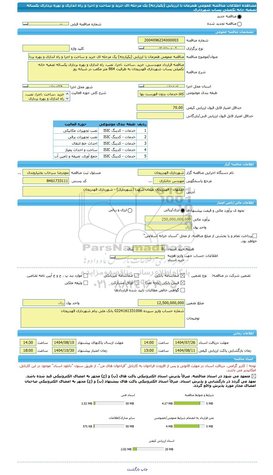 حداقل امتیاز قابل قبول ارزیابی کیفی70.00حداقل امتیاز قابل قبول ارزیابی فنی/بازرگانی