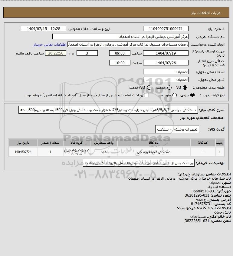 نام دستگاه خریدار:مرکز آموزشی درمانی الزهرا در استان اصفهان