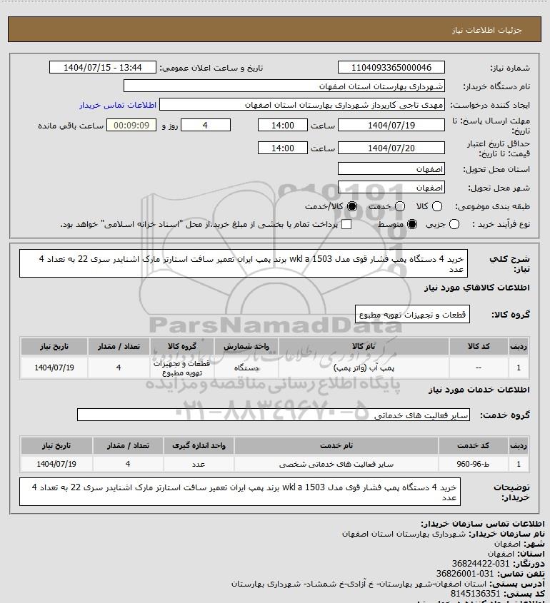 نام دستگاه خریدار:شهرداری بهارستان استان اصفهان