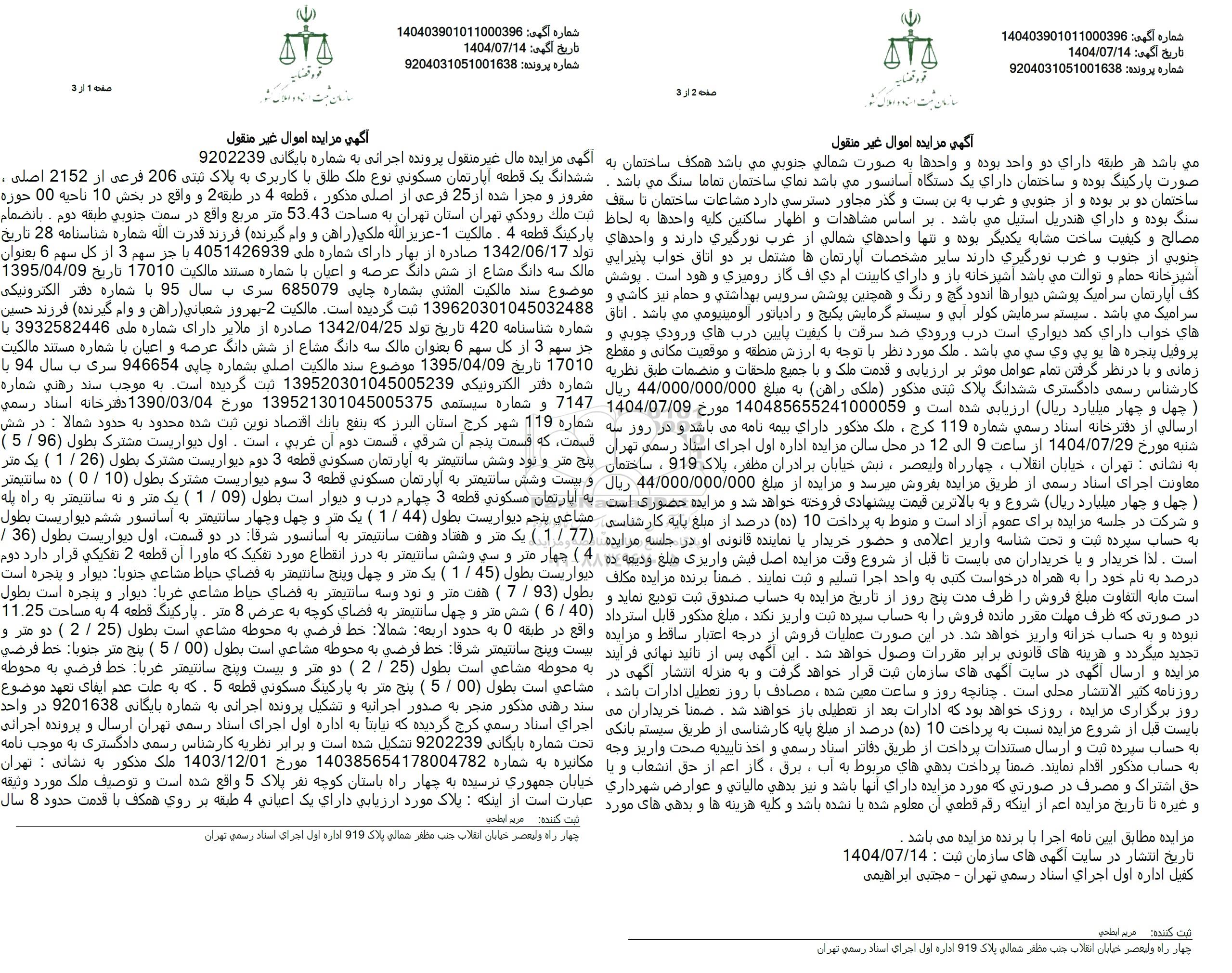 1 مزایده فروش تعدادی از املاک 9816783 1404/08/17 new special payed سایر