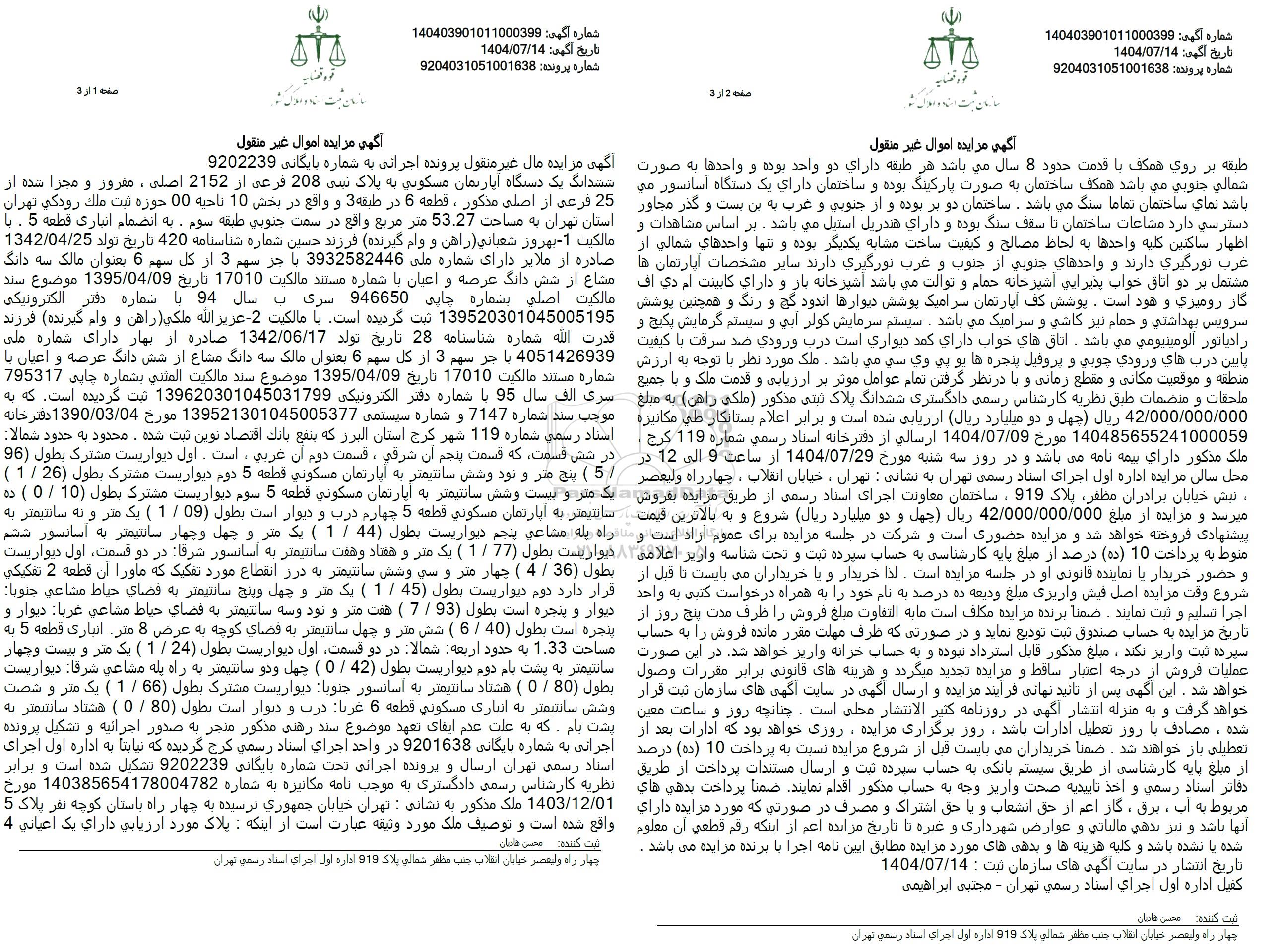 1 مزایده فروش تعدادی از املاک 9816783 1404/08/17 new special payed سایر
