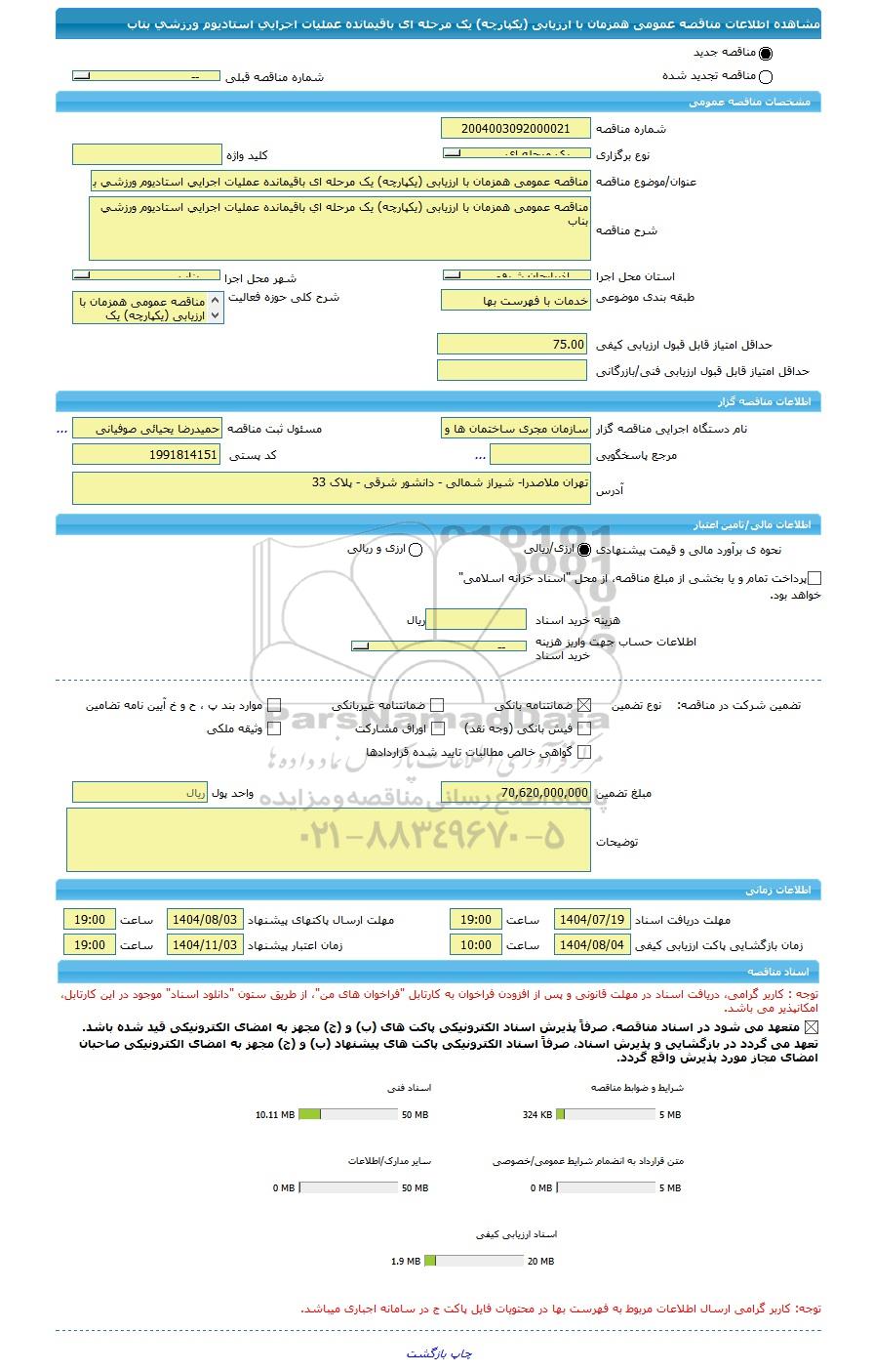 | مبلغ تضمین | 70,620,000,000 | واحد پول | ریال |