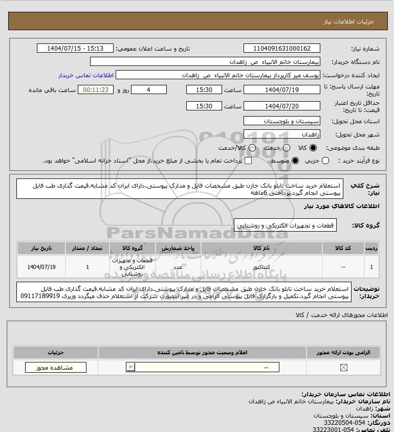 نام دستگاه خریدار:بیمارستان خاتم الانبیاء ص زاهدان