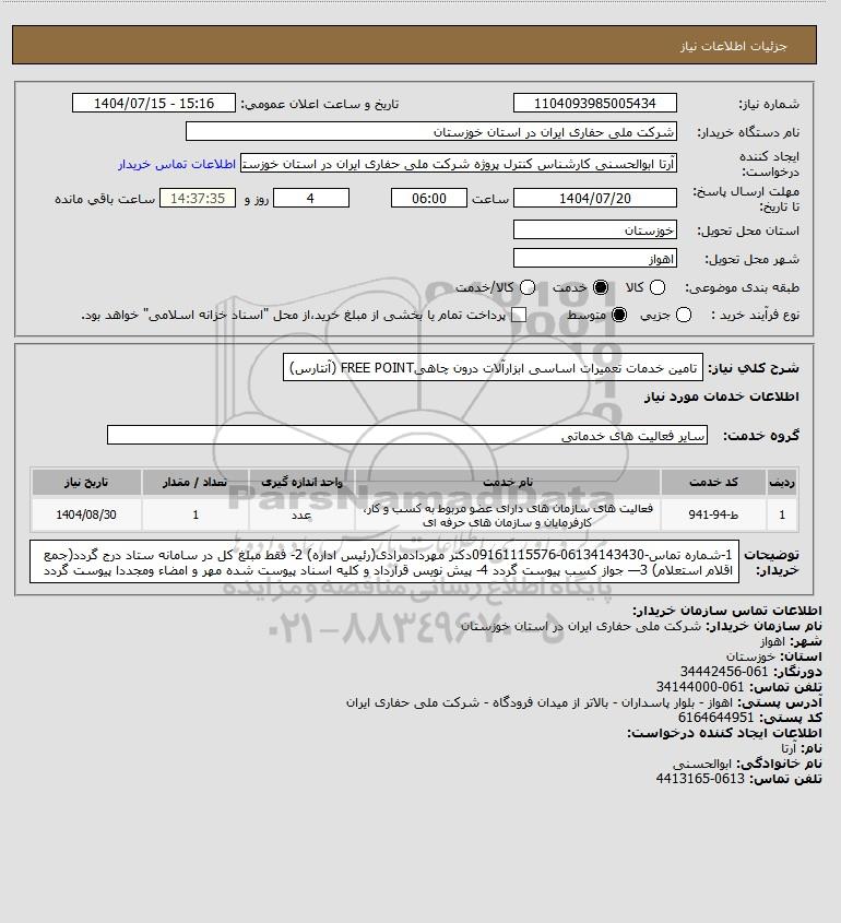 استعلام تامین خدمات تعمیرات اساسی ابزارآلات درون چاهیFREE POINT (آنتارس), استعلام تامین خدمات تعمیرات اساسی ابزارآلات درون چاهیFREE POINT (آنتارس)