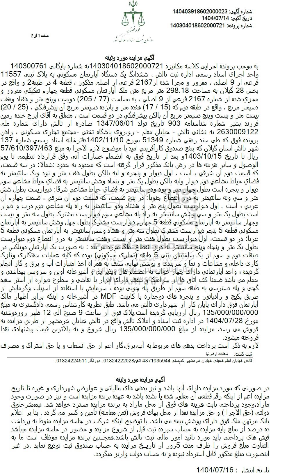شماره پرونده تاریخ آگهی 1404.07.14