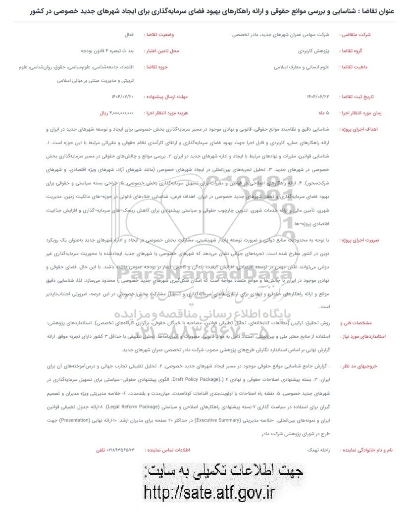 فراخوان شناسایی و بررسی موانع حقوقی و ارائه راهکارهای بهبود فضای سرمایه گذاری برای ایجاد شهرهای جدید خصوصی در کشور , فراخوان شناسایی و بررسی موانع حقوقی و ارائه راهکارهای بهبود فضای سرمایه گذاری برای ایجاد شهرهای جدید خصوصی در کشور