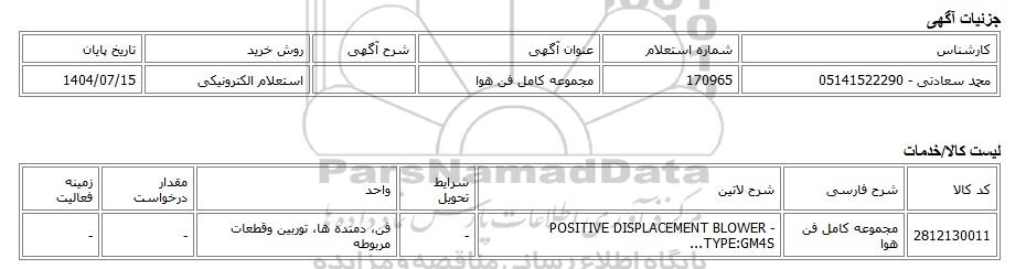 2 استعلام الکترونیکی فن حلزونی 9663811 1404/07/16 new special not payed خراسان رضوی