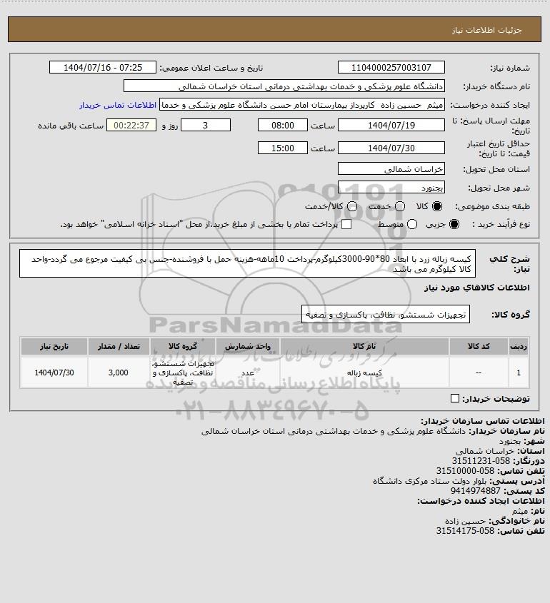نام سازمان خریدار: دانشگاه علوم پزشکی و خدمات بهداشتی درمانی استان خراسان شمالی