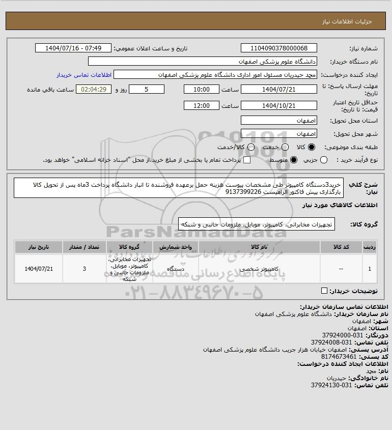 نام دستگاه خریدار:دانشگاه علوم پزشکی اصفهان