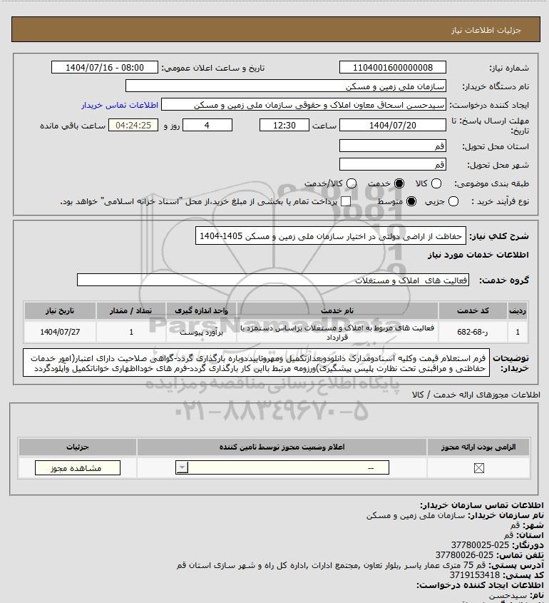 شرح کلی نیاز: حفاظت از اراضی دولتی در اختیار سازمان ملی زمین و مسکن 1405-1404