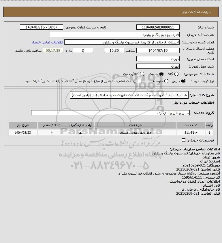 نام دستگاه خریدار:فدراسیون بولینگ و بیلیارد